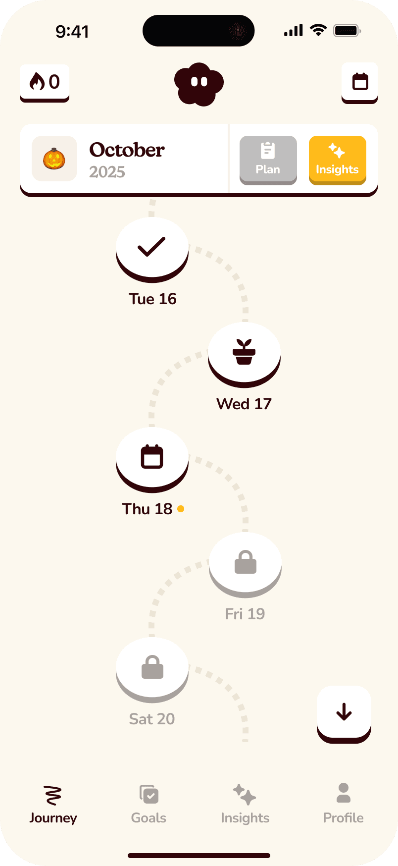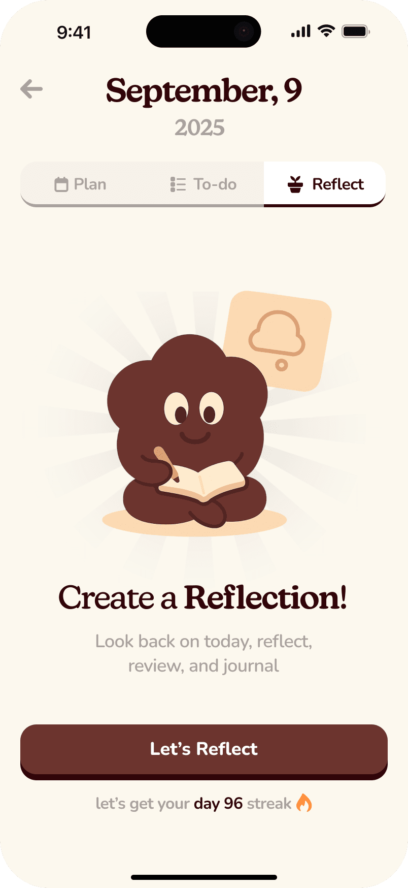 Build daily plans and reflections everyday to get AI insights and build your streak.